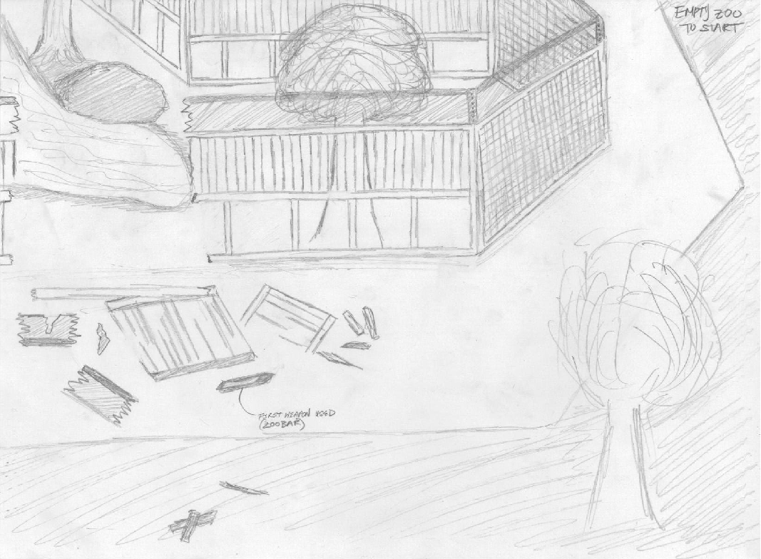 << BACK Conceptual Art: In-Game Interface Interface Gamma Gun ![]() Click to Enlarge Early Designs of the interface and the gamma gun. It will emit a ray like beam that will fly to its target. Interface Mine Launcher ![]() Click to Enlarge Another early design of the interface. Shows mine launcher, mine, and crosshair designs. Conceptual Art: Animals Original Animals ![]() Click to Enlarge These were the first drawn concepts of the unpolished animals. These are going to be used as references to model the polished versions. Whaguana ![]() Click to Enlarge A more refined drawing of the Whaguana. This creature will be very large in proportion and will likely go through a few more changes before it goes into the game. Conceptual Art: Environment Zoo Scene ![]() Click to Enlarge This drawing shows the classic zoo environment with a broken fence. Animals will be escaping through wholes in fences like these. Also the zoo bar is shown at the bottom and the main character will pick it up once he walks over it. Starting Position ![]() Click to Enlarge The character will be starting at the beginning of the zoo. He will see something that resembles this scene in the beginning. |